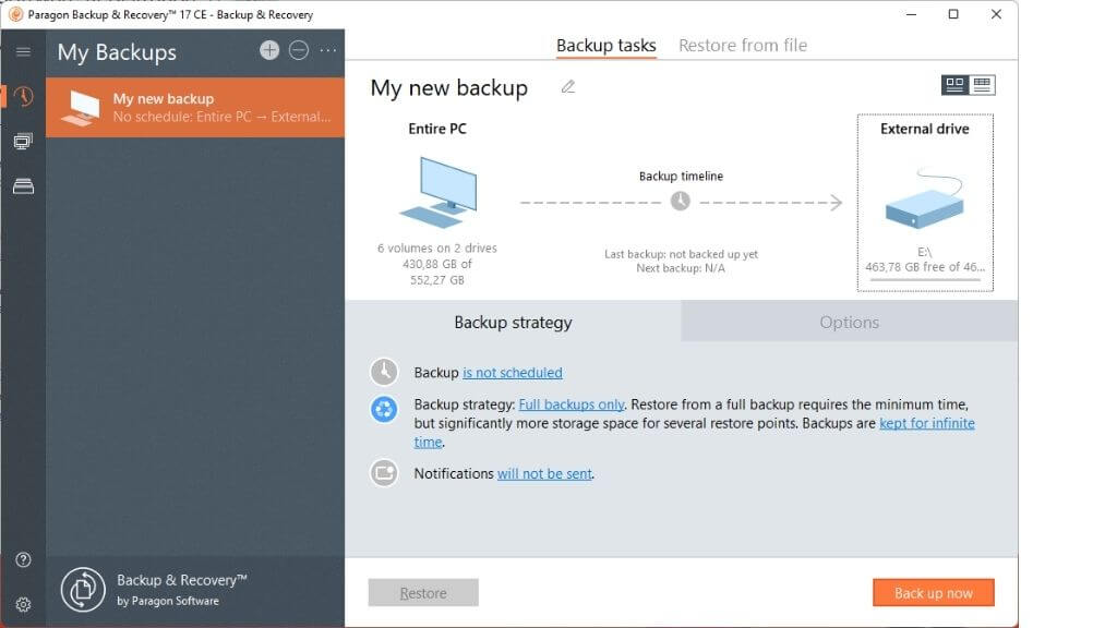Since this is only for personal use, it means we don’t care about business features being missing. As a personal backup solution, Paragon has a lot going for it. You can back up disks, volumes, folders, and files.