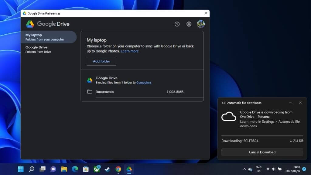 If you install the Google Drive desktop application, you can sync essential files from your computer to your Google Drive in the same way you can with OneDrive, DropBox, and other competing services.