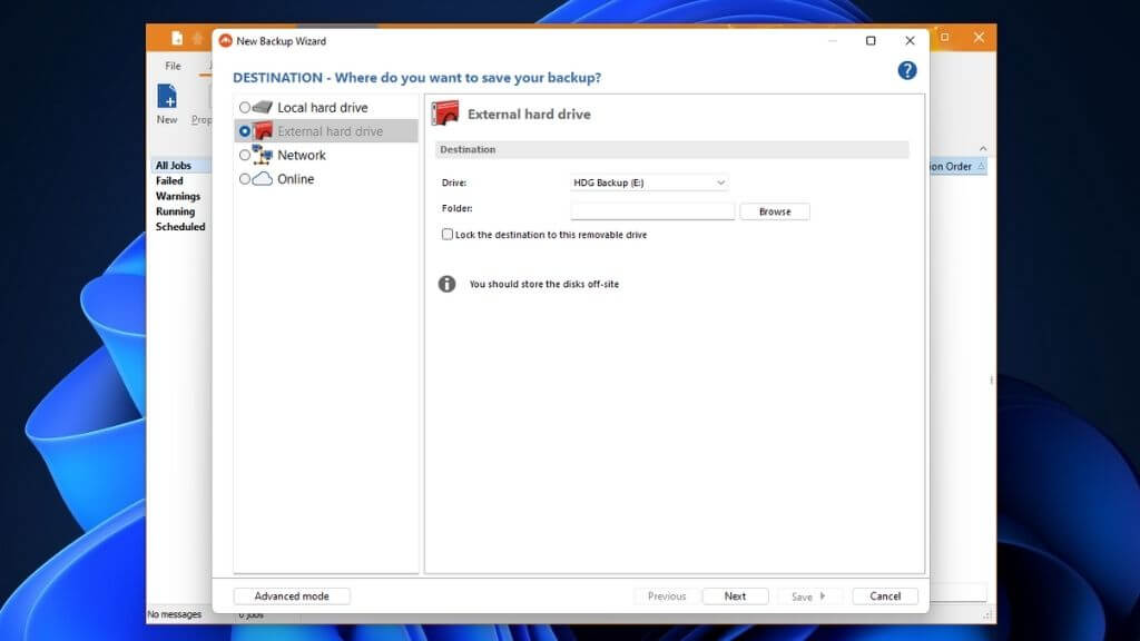 You can also make data backups to virtually any medium, but these days the two best options are external hard disk drives (HDDs) and cloud storage backups on internet servers. Of course, if you want to use an external SSD or a flash drive, nothing’s stopping you! As long as you have enough disk space for it.