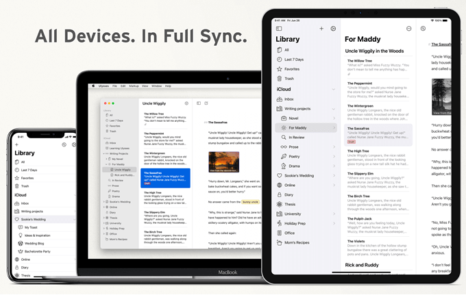 It can publish directly to WordPress and Medium, export to PDF, Word, HTML, ePub, RTF, and sync to iCloud. If you have it on your desktop and iPad, you can transition from one to the other with no loss.