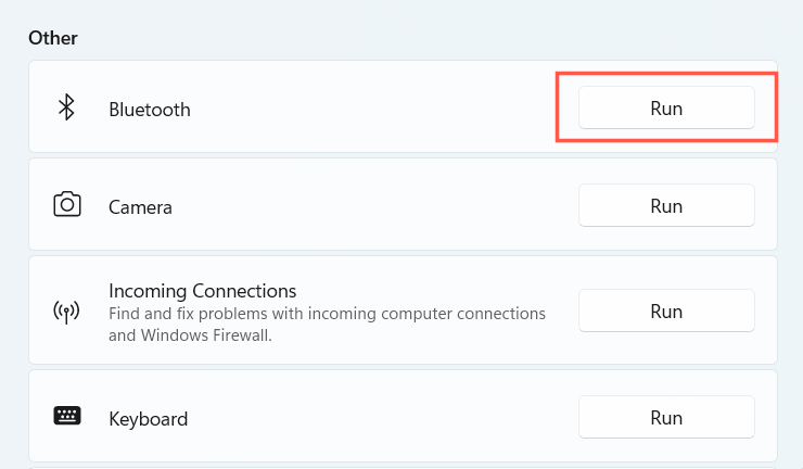Windows 11 has a built-in Bluetooth troubleshooter that detects and fixes Bluetooth issues on your computer. To run it: