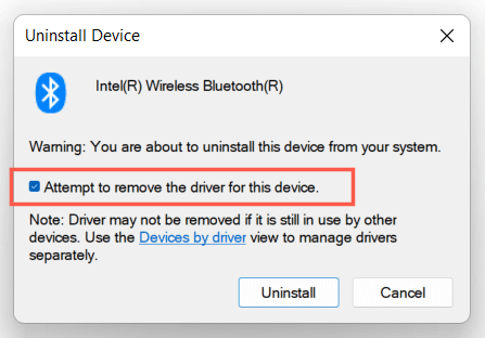- Check the box next to Attempt to remove the driver for this device and select Uninstall.