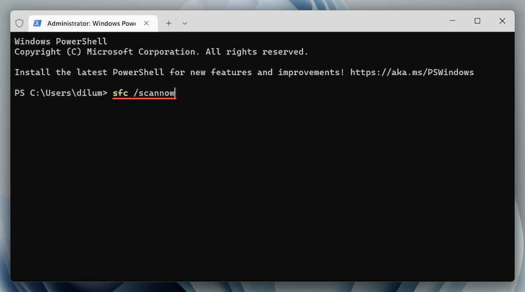 Note: An SFC and DISM scan can take up to an hour to complete. Feel free to keep working, but do not close the Windows PowerShell or Command Prompt.