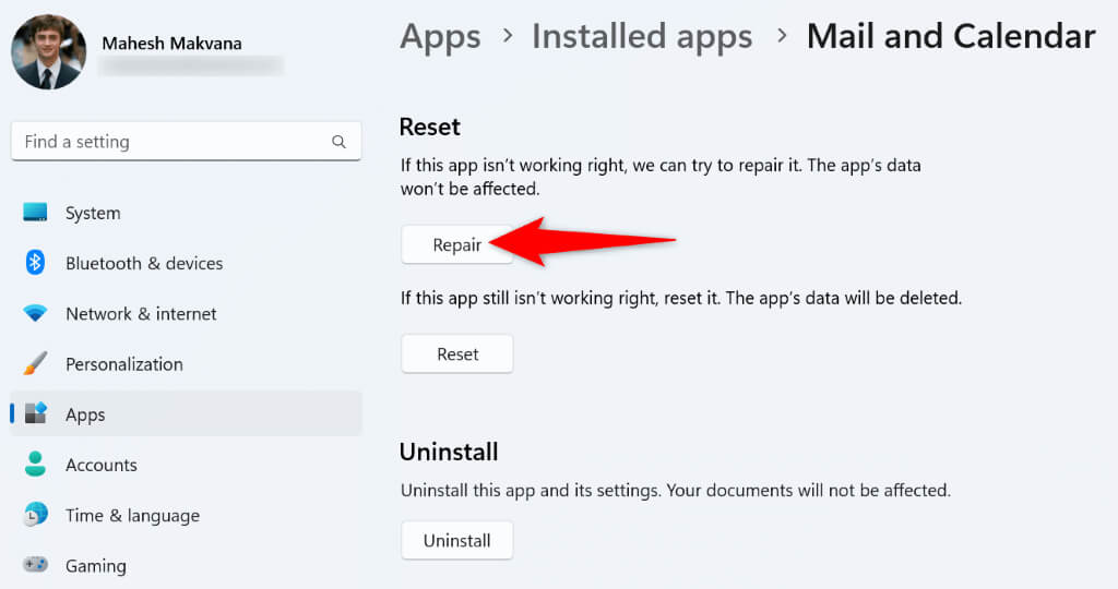 If your Calendar app still doesn’t work, your app may be experiencing a technical glitch. In this case, you can use Windows’ built-in repair option to repair your application. If that doesn’t work, you can reset the app to the factory settings to resolve all your issues with the app.