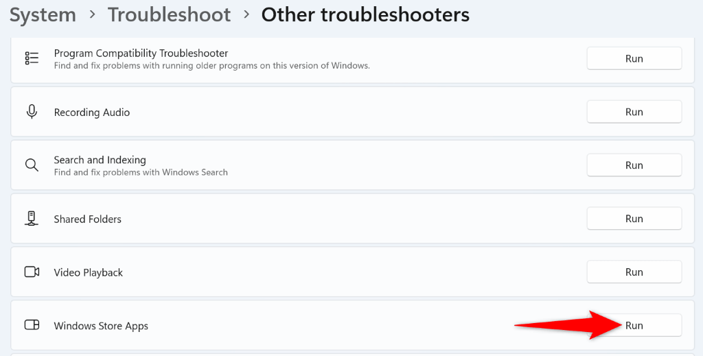 - Choose Run next to Windows Store Apps troubleshooter.