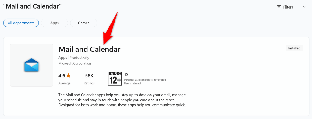 - Open Microsoft Store on your PC and search for Mail and Calendar.