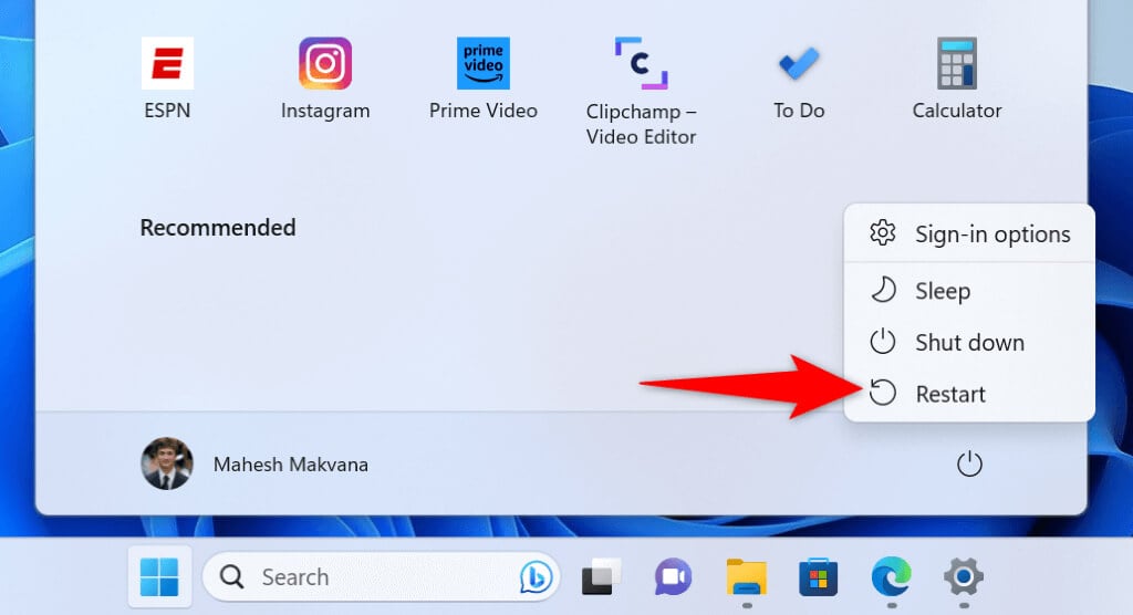 When you experience issues using an app on your PC, the first step to take is to reboot your PC. Doing so turns off all your system features, possibly fixing minor problems. Make sure to save your unsaved work before you power down your computer.