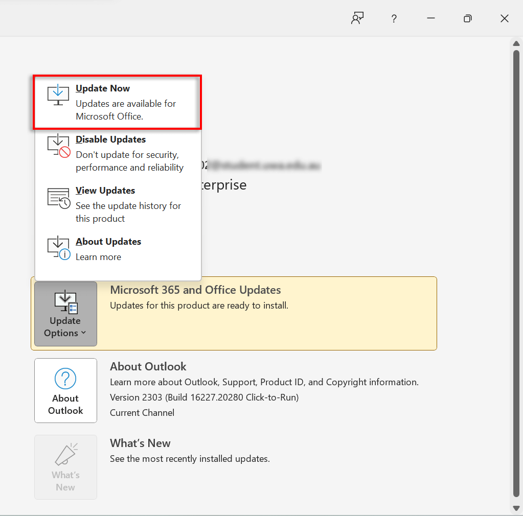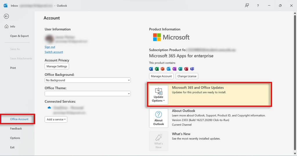Software updates provided by Microsoft don’t only add features and keep the app functioning with your operating system, they also remove various technical glitches. If you are unable to attach files in Outlook, try updating it to the current version with the steps below.