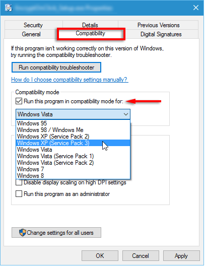 - Navigate to the Compatibility tab and untick the Run this program in compatibility mode option.