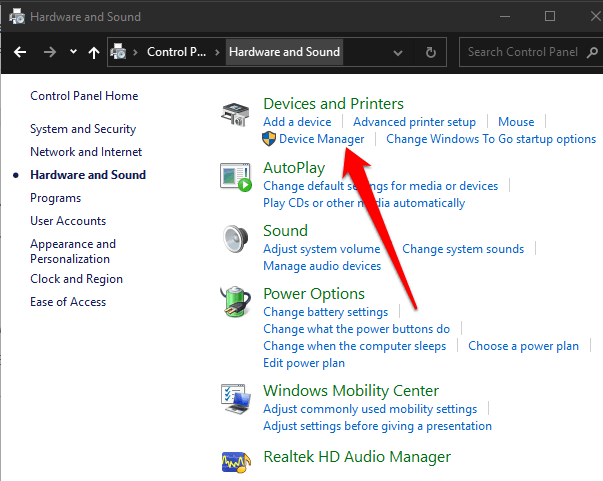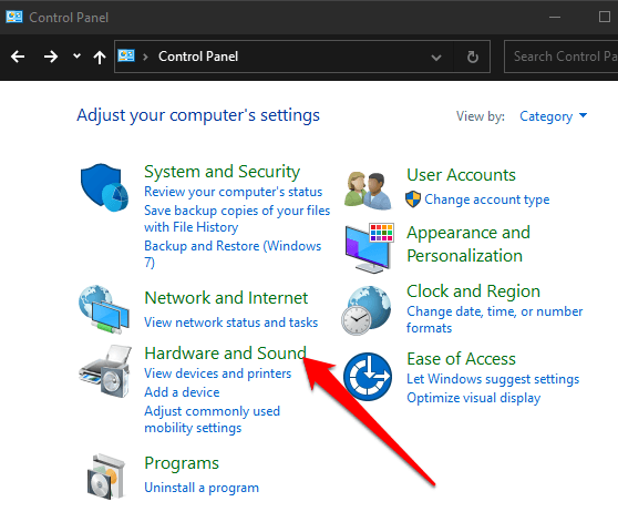 - Right-click Start > Control Panel and select Hardware and Sound.