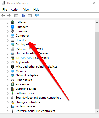 - Select **Disk Drives** to see all the storage devices plugged in to your computer.