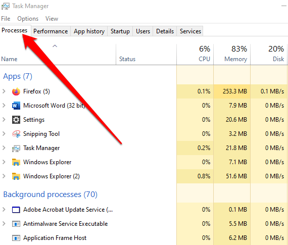 - Select the **Processes****tab** to see all the running processes.