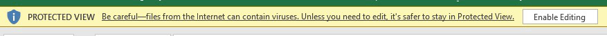 - * When opening a protected spreadsheet, you’ll see a yellow pop-up at the top of the spreadsheet that says, “PROTECTED VIEW Be careful — files from the internet can contain viruses. Unless you need to edit, it’s safer to stay in Protected View.”