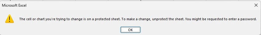 It might be that the sheet or workbook you’re trying to type in is protected. If this is the case, Excel won’t let you type any data into the sheet and will display a message letting you know. It’s easy to unprotect a sheet or workbook so you can enter data, although if the sheet or workbook is password protected, you’ll need the password from whoever created it.