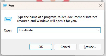 - In the Run box, type Excel/safe into the Open field.