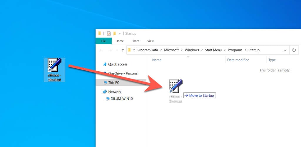 - Drag and drop ctfmon – Shortcut from your desktop to the File Explorer window.