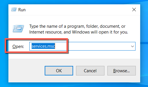 - Type services.msc and press Enter.
