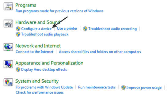 You can run the troubleshooter by going to Start, Control Panel and then searching for troubleshooter in the search box. Click on Troubleshooting. Finally, under Hardware and Sound, click Configure a device.