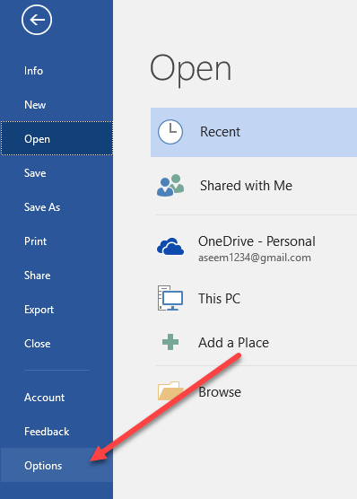 If you are using Word 2010 or earlier, then click the Office button and click the Word Options button at the bottom.