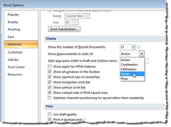 Change Measurement Units in Word