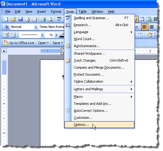 To begin, select Options from the Tools menu.