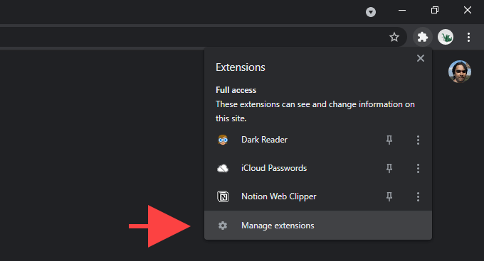 Chrome extensions can create conflicts that result in slow file downloads. Try disabling them. To do that, select the **Extensions **icon to the top-right of the Chrome window and select Manage Extensions. Follow by turning off the switches next to each active extension.