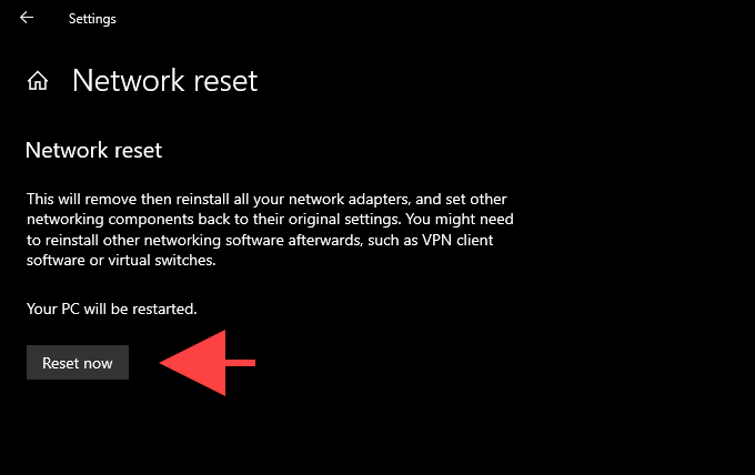 If none of the fixes above helped, you might be dealing with an issue related to the network settings in the operating system. Hence, a network settings reset might help resolve that. To do that, go to **Start **> **Settings **> **Network & Internet **> **Status **and select Network reset > Reset now.