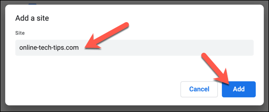- In the **Add a site** box, provide the URL for a site you wish to hear sound from, then select **Add** to confirm.