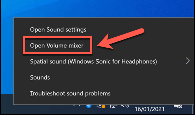 - To do this on Windows, right-click the sound system tray icon in the bottom-right corner, then select the **Open Volume mixer **option.