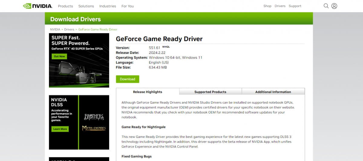 - Download the latest update package from the official website of the manufacturer (Nvidia in our case).