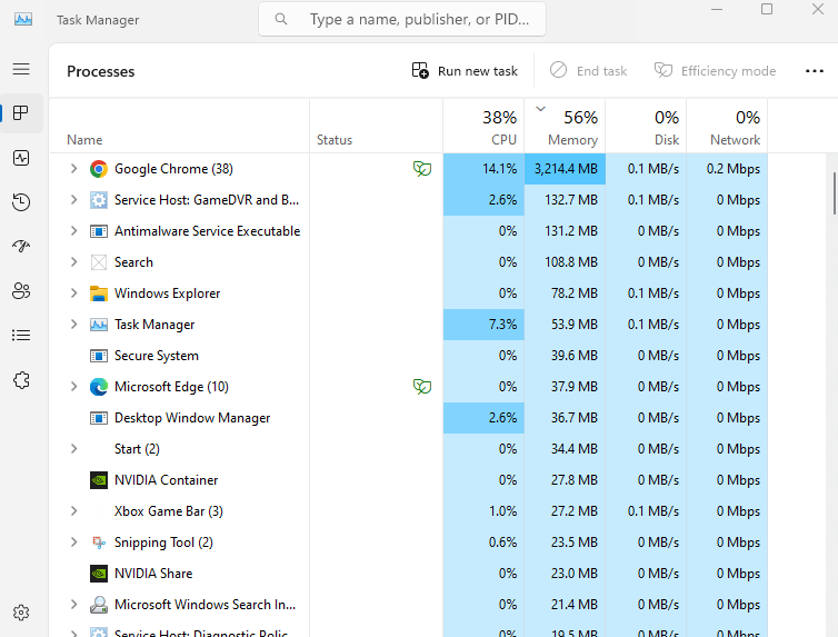 Look for Background Processes Eating Up Memory