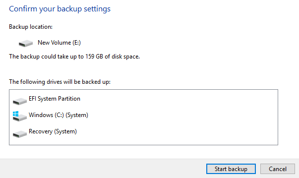 Next, you’ll have to select which drives you want to backup. By default, Windows will select the system partition, recovery partition and EFI system partition. You can add any additional drives if you like.