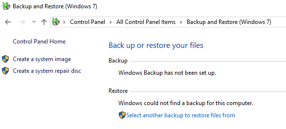 You can always create it later, but it’s taking a risk. Once you have created the backup, you won’t see any indication of it in the backup and restore dialog because it’s just a system image. However, if you go to the backup location, you will see a folder called WindowsImageBackup.