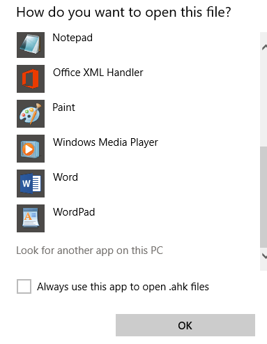 Once you’ve downloaded it, extract the file to a memorable location. Then, in the directory, double click an .ahk file, then when asked, **choose to browse **what application should be used to open such files. Next, browse and navigate to AutoHotkeyU64. This will allow you to run AutoHotkey scripts by double clicking them.