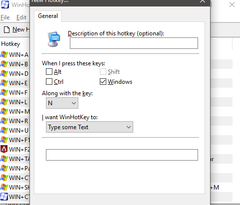 Now, type or paste the text into the box at the bottom of the new hotkey window. Finally, make sure to choose a new keyboard shortcut you haven’t used before.