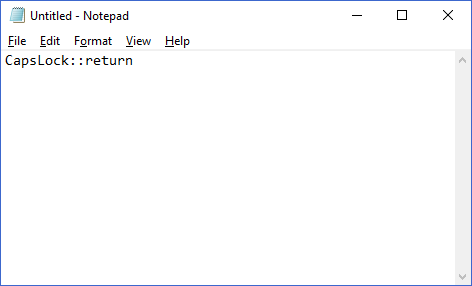 For the sake of this example, we want to disable the Caps Lock key. On this page, you can see that AutoHotKey references that key as “CapsLock”. The left column shows the reference name(s) and the right column shows what key it corresponds with. ### Open a Text Editor