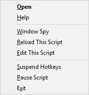 Right-clicking on the AutoHotKey icon in your taskbar’s system tray will bring up the following menu: