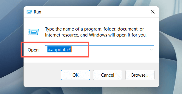 - Type %appdata% and select OK.