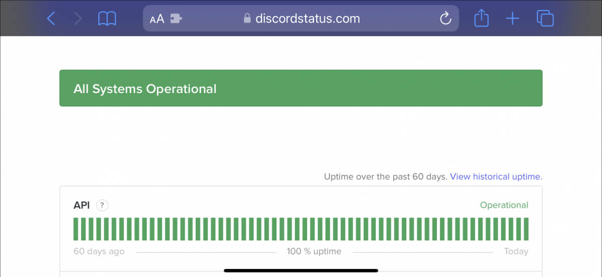 It’s best to begin by confirming there’s nothing wrong with Discord on the server side. Just visit the Discord Status page and ensure all systems and voice servers are operational. If not, wait until Discord resolves the problem. It shouldn’t take long.