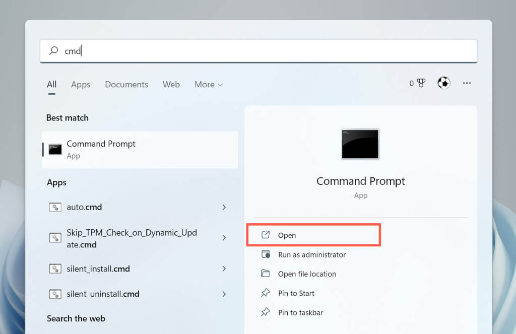 - Open the Start menu, type cmd, and select Run as administrator.