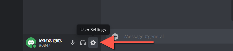 - Select the Gear icon next to your Discord username at the bottom left corner of the window.