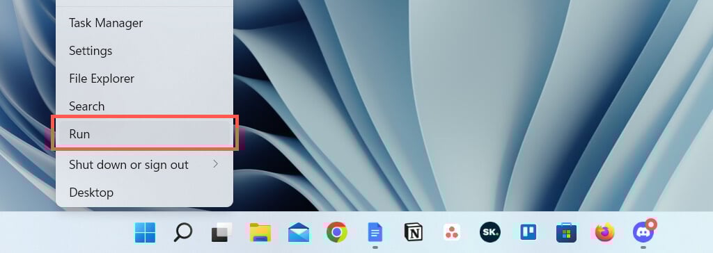 - Right-click the Start button and select Run.