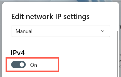 - Set Edit network IP settings to Manual and enable IPv4.