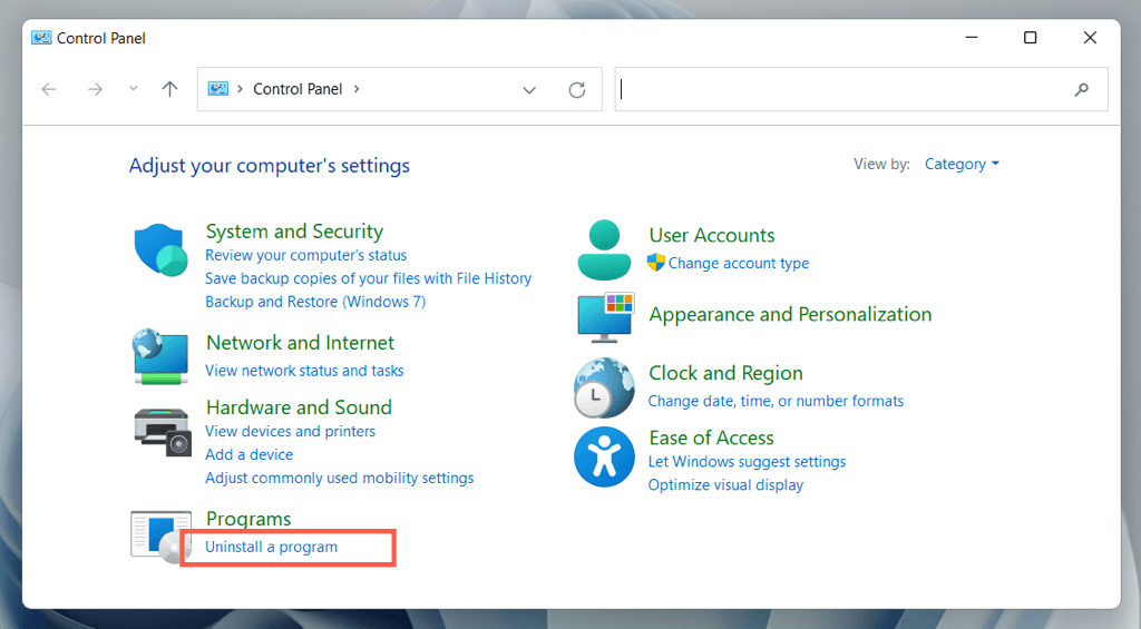 - Select Uninstall a program.