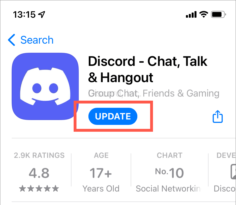 Updating Discord to its latest version is a terrific way to fix persistent issues with the app. On mobile devices, head over to the Play Store or App Store, search for Discord, and tap the Update.
