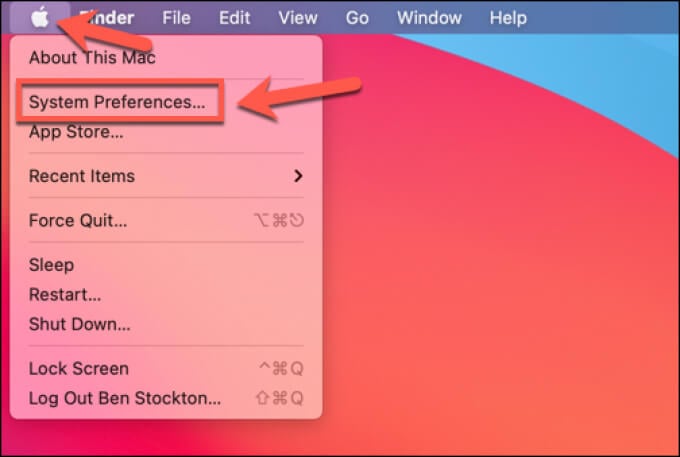 - For Mac users, you’ll need to open the **System Preferences** menu. You can do this by opening the **Apple menu** on the menu bar and selecting **System Preferences**.