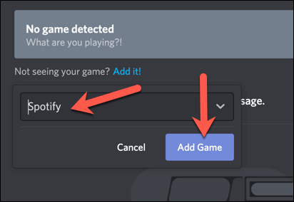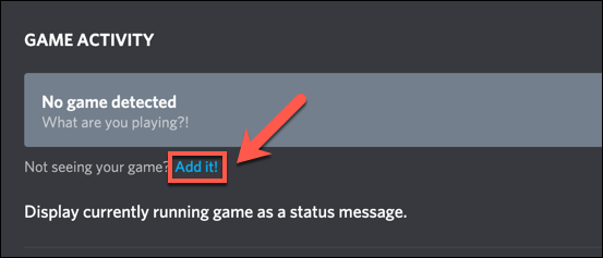 - If Discord doesn’t identify a running game or open application, it’ll show a **No game detected **message. To get around this issue, select the **Add it **option underneath.