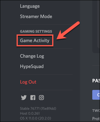 - In the **Settings** menu, select the **Game Activity **option, listed under the **Gaming Settings** category.