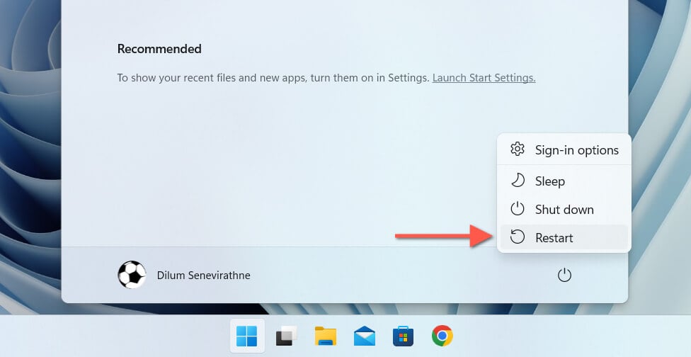 The age-old IT advice of turning a device off and then back on isn’t just a cliché. It’s recommended because a standard reboot refreshes the system and resolves various disruptions—from features like Fast Startup in Windows—that impede application functions. To restart your PC, open the Start menu, and select Power > Restart.