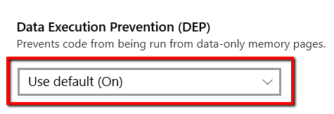 Under Data Execution Prevention (DEP), choose On. By default, it might already be on. But in case it isn’t, this is where you change it.